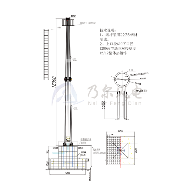Wind Turbine Tower Specifications 50kw (18m)
